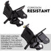 - Round bar-style spring bars allow extra clearance from A-Frame when turning.