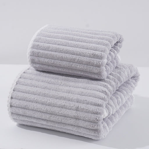 Grey Thickened Coral Fleece Towel Set, Large Bath Towel & Face Towel Combo, Soft & Absorbent Towels for Home Use