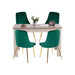 Grey Rectangular Dining Table with 4x Green Velvet Chairs