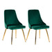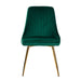 Let's introduce our latest table and chair set, including four green velvet dining chairs and a gray rectangular wood table.