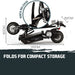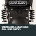 Of course, our boffins paid equal attention to the handling - high-tensile yet lightweight steel frame houses tough polished steel shocks, massive disc brakes and oversized knobby 10-inch tyres. For those that like to tinker with their toys, you'll love how easy it is to tweak the shocks and brakes to your riding style.