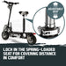 Rip it up on the Stealth1-6 in traditional stand-up position, or take up the option of a supremely comfortable ride by locking in the spring-loaded seat. Maximum visibility is provided by high-output yet efficient LED head and tail lights.
