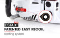 exclusive E-Start system. This patented technology means just about anyone can pull start large capacity machines with minimal effort. E-Start works by pairing two opposing memory retaining spring coils. As the user pulls the starter cord, a second coil builds energy and releases that energy all at once - instantly firing the engine! There really is nothing else on the market like it.