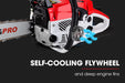 patented air injection carburettor delivering enough power to take on a whole variety of different jobs - from tree work, preparing firewood and sectioning those small to medium branches, to clearing overhang and removing bushfire hazards.