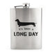 Punny black decal reads 'It's been a long day' under a dachshund silhouette