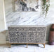 Elevate your space with the Grandiose Vine Mother of Pearl sideboard from our exquisite Mother of Pearl range. This console is a true statement piece, featuring a larger size and showcasing a striking vine pattern...