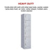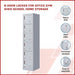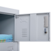 The unit measures 1800 x 380 x 450mm, and several units can be seamlessly placed side-by-side. Made with durable steel, the unit features six stacked square lockers with vents for air circulation and spaces for name tags or plates. The unit can hold up to a maximum weight capacity of 80kgs in total.