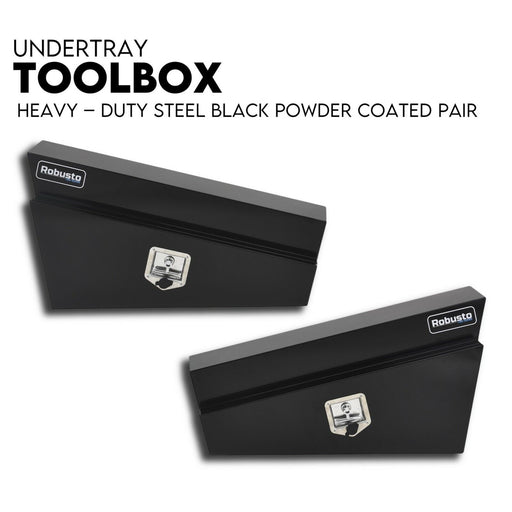 Under Tray Tool Box Underbody Pair Set 750mm Black Steel