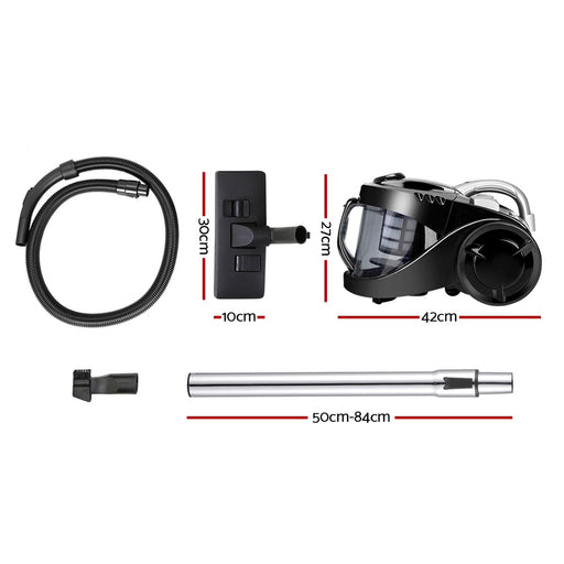 Devanti Vacuum Cleaner Bagless Cyclone Cyclonic Vac Home Office Car 2200W Black