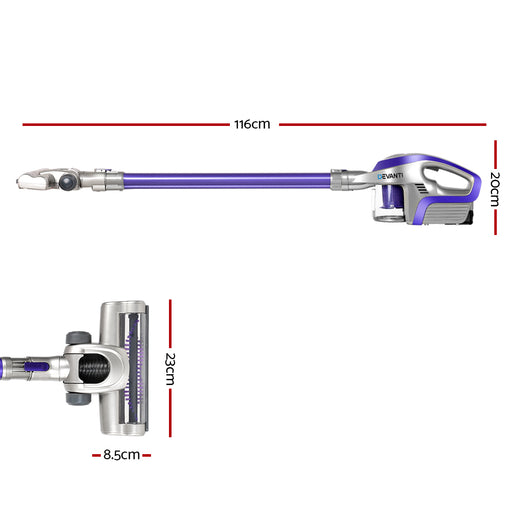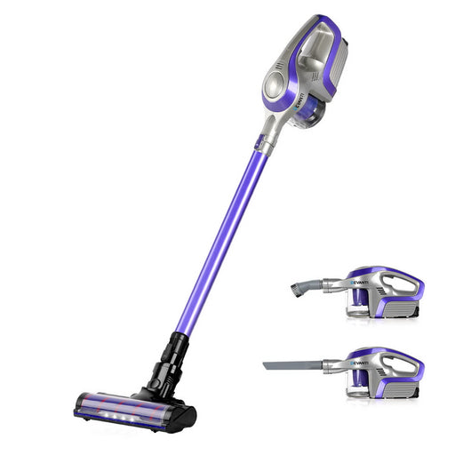 In stockDevanti Cordless 150W Handstick Vacuum Cleaner - Purple and Grey The Devanti 150W Handstick Vacuum Cleaner now comes with a motorized roller head ...