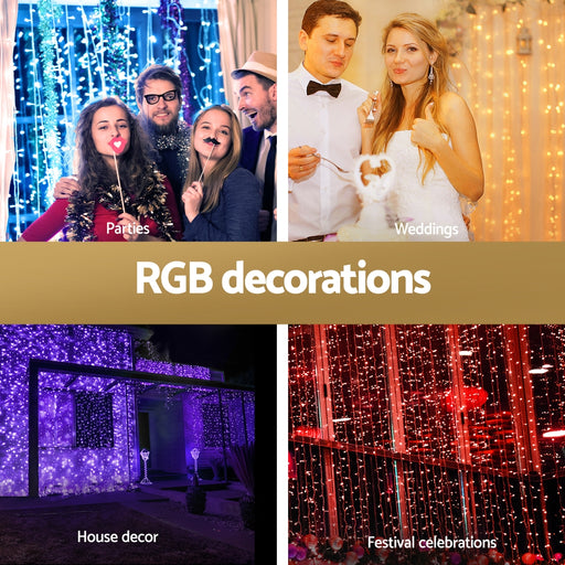 3X6M Christmas Lights Curtain Light 960 LED RGB Remote Jingle Jollys