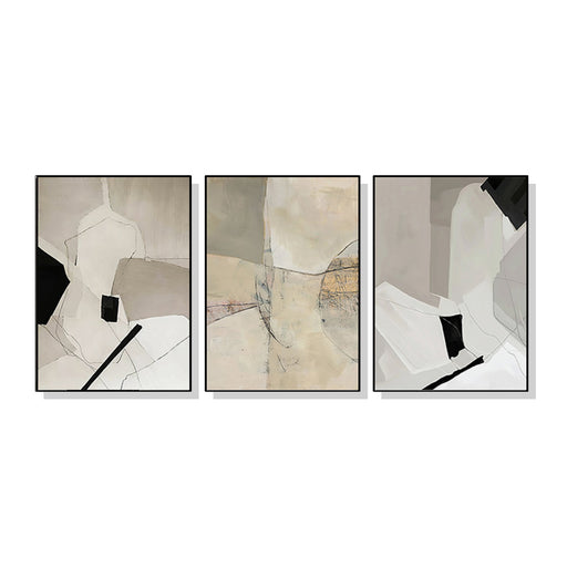 40cmx60cm Modern Abstract Beige 3 Sets Black Frame Canvas Wall Art