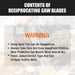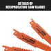 Long lasting bi-metal blades for sheet metal, re-bar and pipes. Rugged tempered high-carbon steel blades for wood and general purpose demolition.