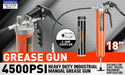 18'' Manual Pistol Grip Grease Gun Flow Pressure 4500PSI Flexi Hose & Coupler