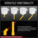 The 19Pc Spill-Proof Radiator Coolant Refilling Funnel Kit is designed for convenient and safer coolant refilling. It eliminates spills and ensures a clean and efficient process. The kit features versatile functionality with straight extensions and 45° elbows to accommodate most vehicles on the market. The funnel comes with a scale for precise measurement and the included fluid stopper prevents drips and air bubbles. With clear instructions and a variety of adapters, this kit is suitable for both domestic and imported vehicles. The durable construction and convenient design make coolant refilling hassle-free.