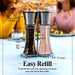 High Quality Glass and Stainless Steel Grinder Set: these salt and pepper shakers feature a modern design and are stylish and elegant enough for kitchen-to-table use! *Salt and pepper not included.