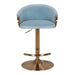 Impart a touch of regal air to your kitchen bench with our Gas Lift Bar Stool. Offering magnificent comfort, its gleaming gold-brass chrome base pairs beautifully with a touch of luxurious blue velvet to create...